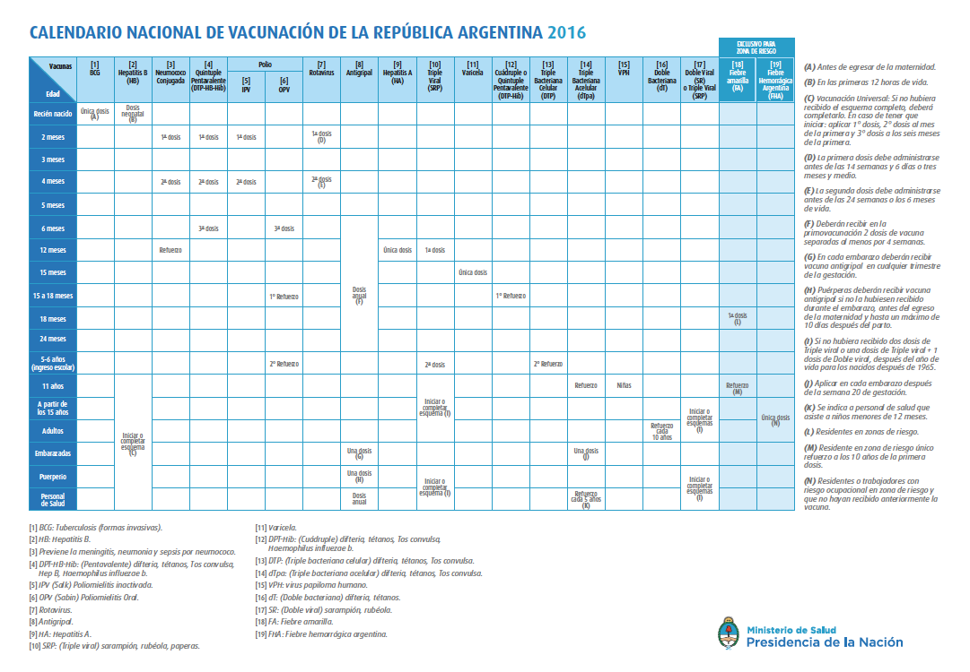 Te adjuntamos el nuevo calendario de vacunación 2016 para nuestros niños.